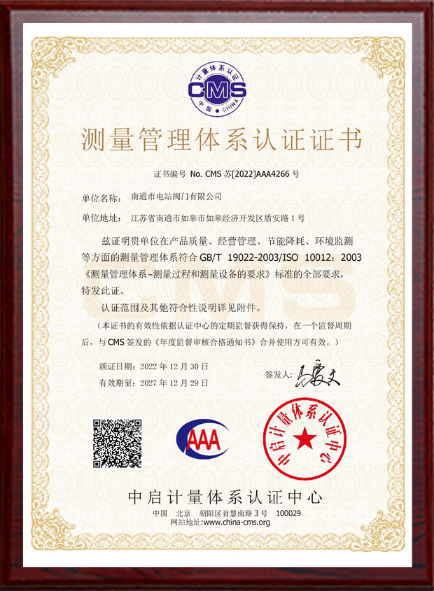 测量管理体系认证证书